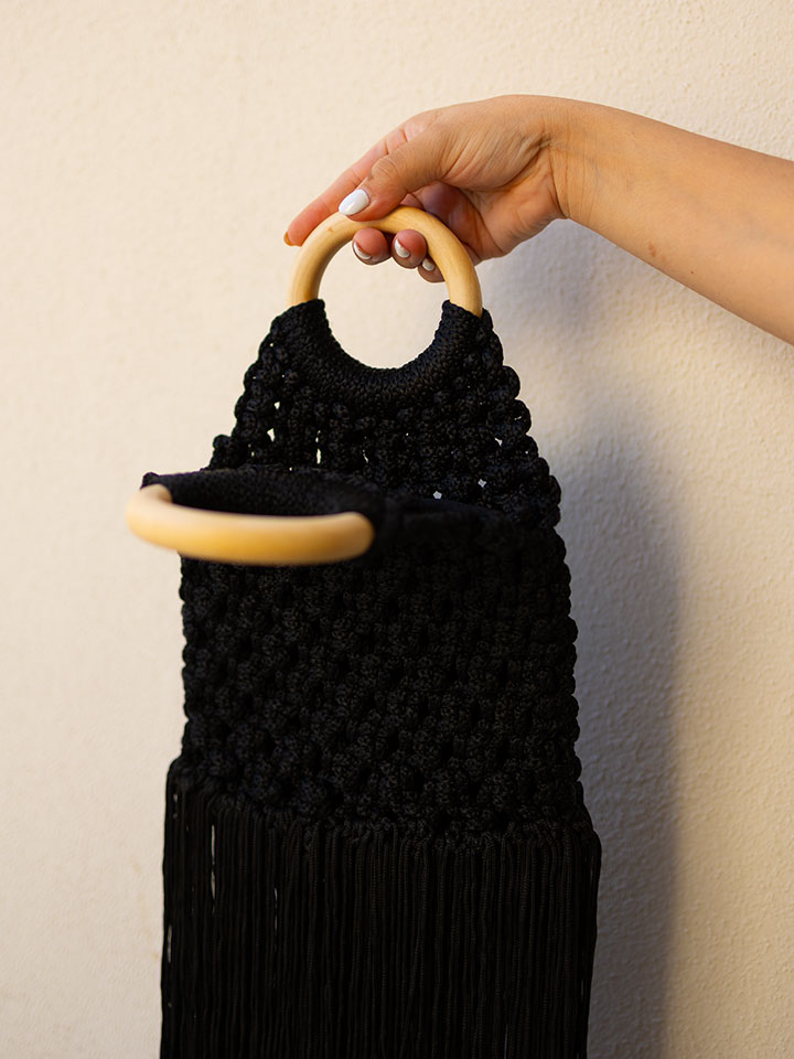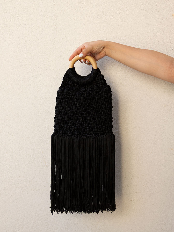 Confeccionada en su totalidad mediante la técnica de macramé, la Bolsa Habana es el accesorio perfecto para quienes desean un Resort Look elevado. Sus flecos en la parte inferior añaden un toque distintivo y llamativo, realzando su belleza única. Es la pieza ideal para quienes buscan un estilo refinado y elegante en sus vacaciones.